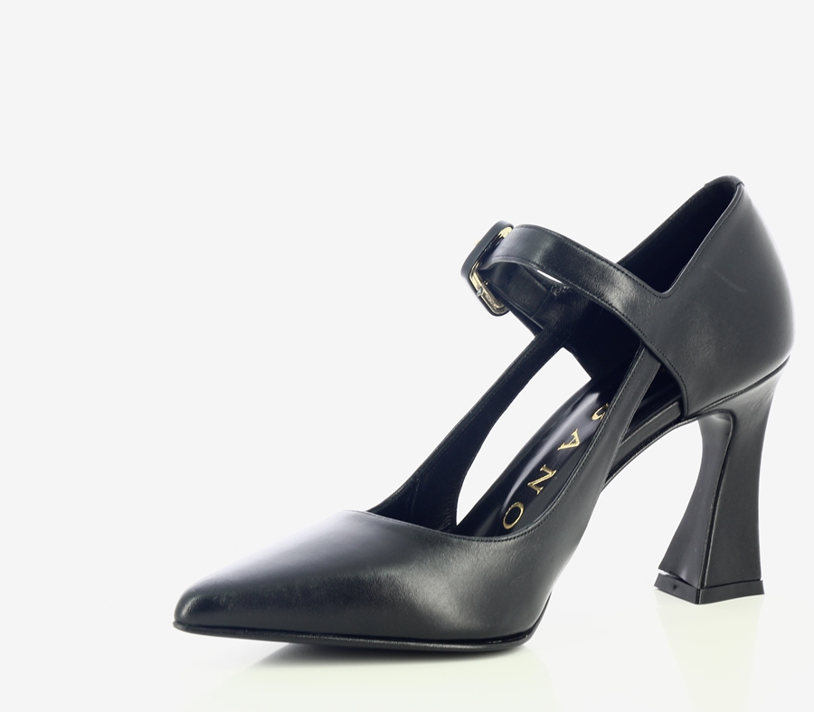 DETTAGLIO: Décolleté con punta affusolata e design elegante. Cinturino alla caviglia con fibbia metallica e apertura laterale.Tacco a clessidra, che conferisce un tocco distintivo. Perfetta per occasioni formali o serate speciali.