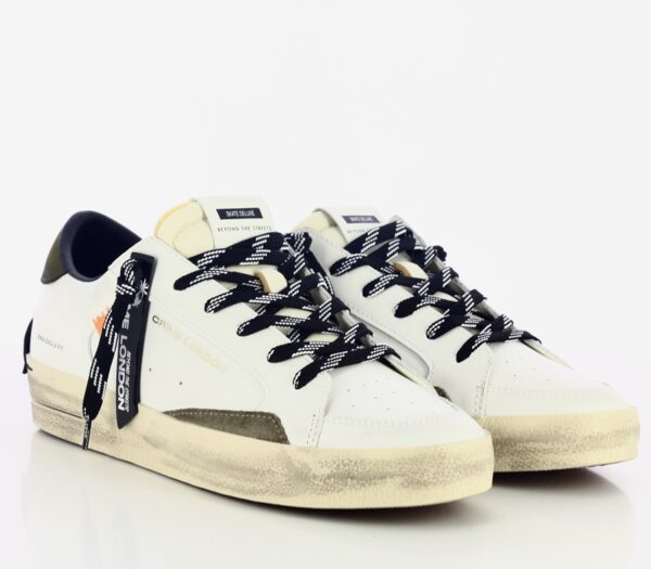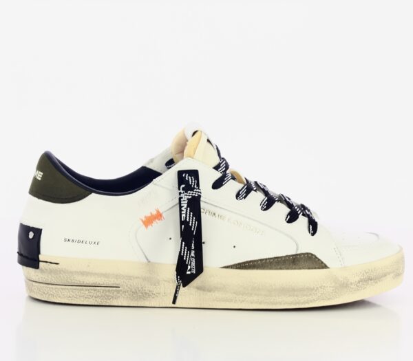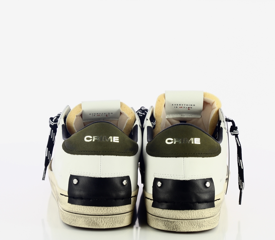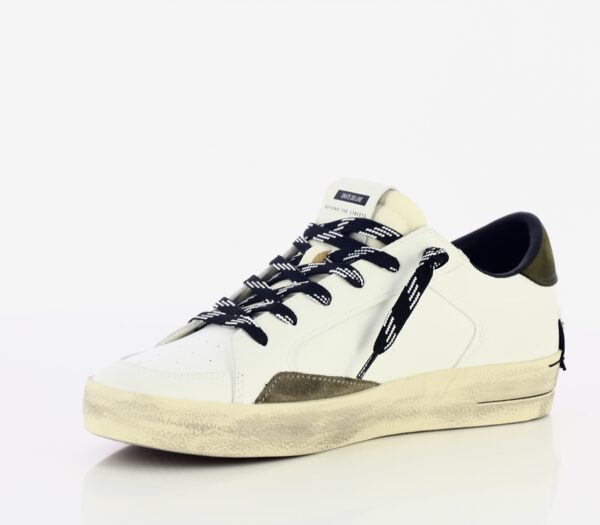 Tomaia in pelle bianca, dettagli in suede verde oliva