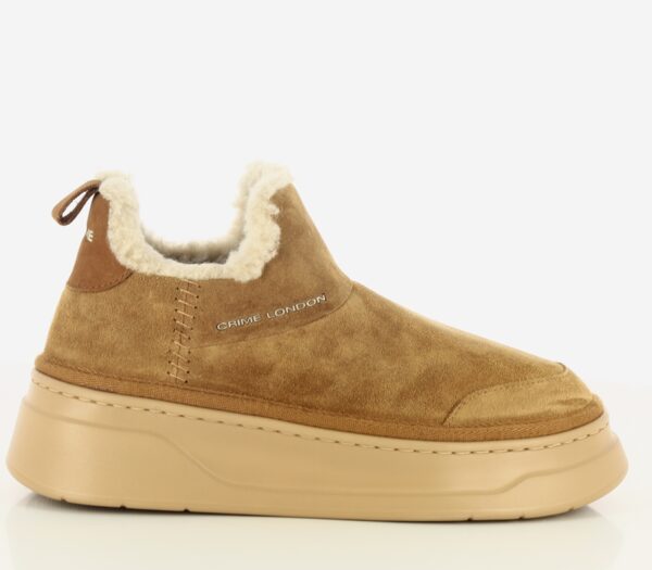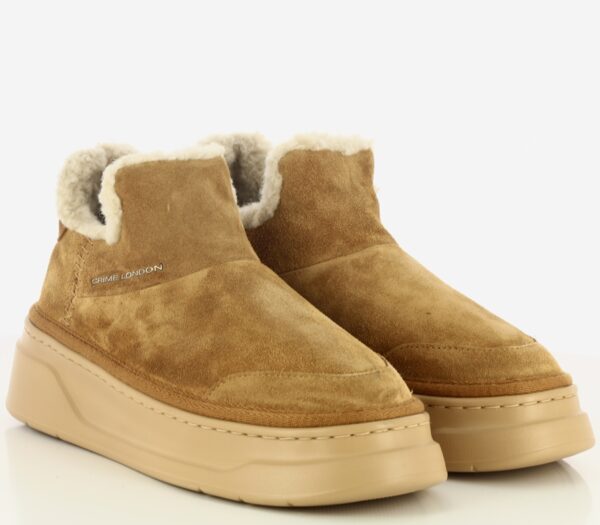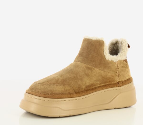 DETTAGLIO: Stivaletto in suede,interno ecofur.Presenta una silhouette stondata e un logo esterno. Dettagli di cuciture a vista laterali e una pratica linguetta posteriore facilitano la calzata. Comfort e stile per un look casual e cozy.