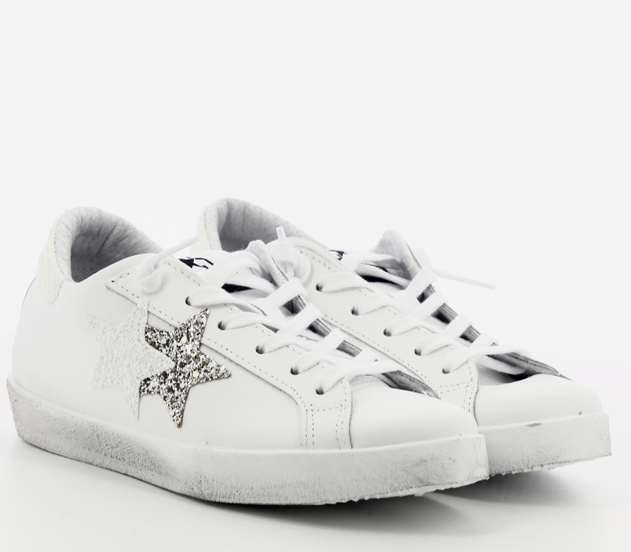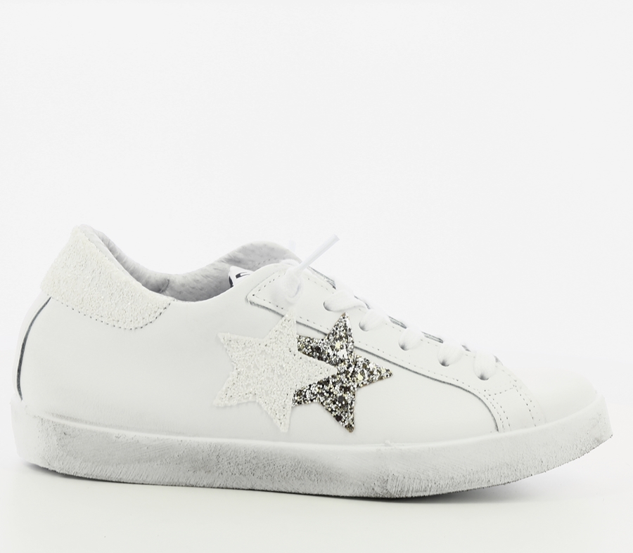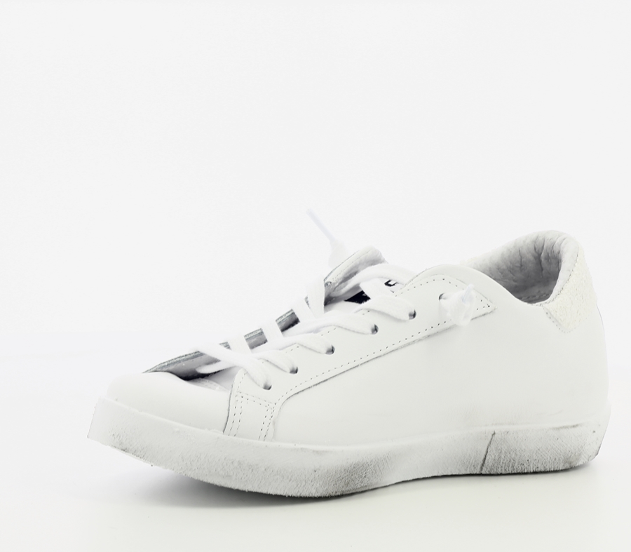 DETTAGLIO: Sneakers realizzate in pelle bianca,effetto “used”.Stelle laterali.Made in Italy