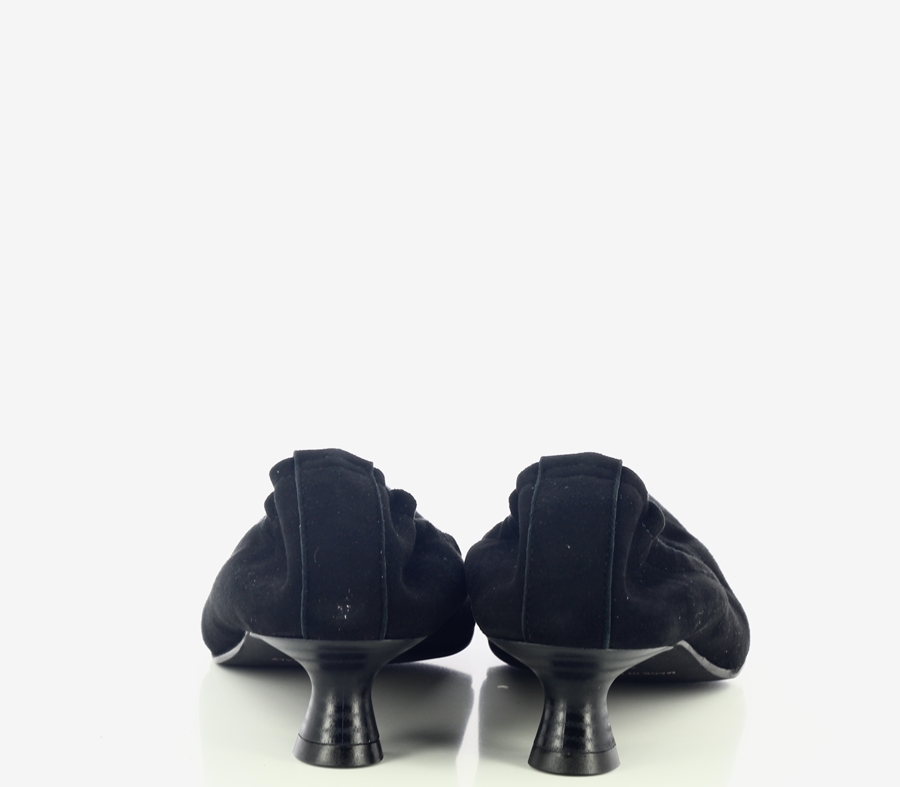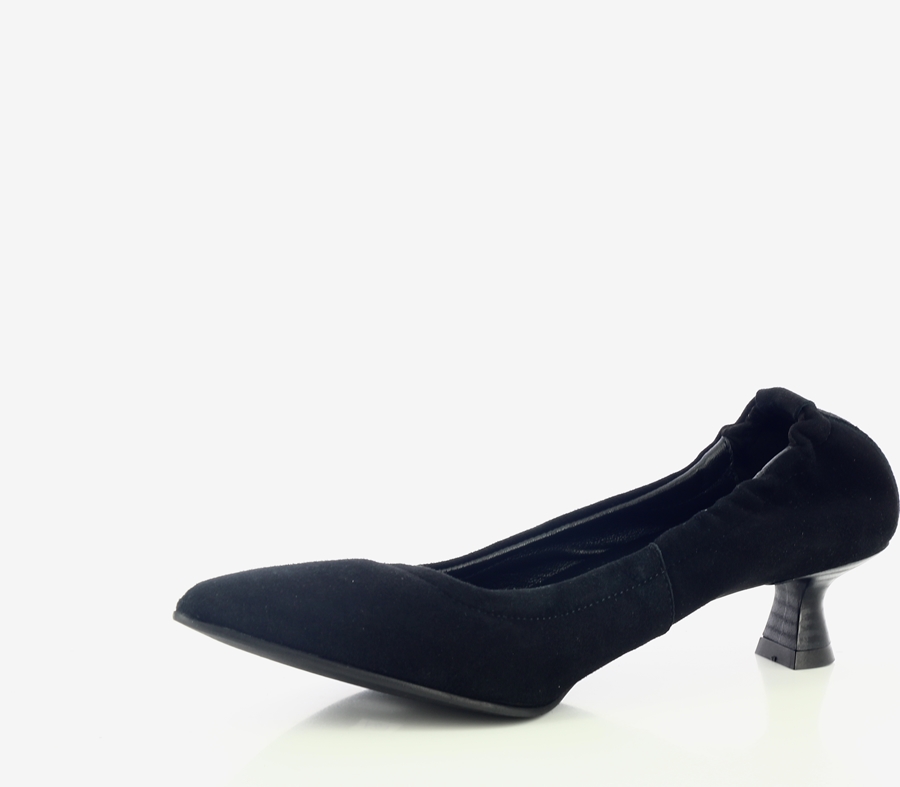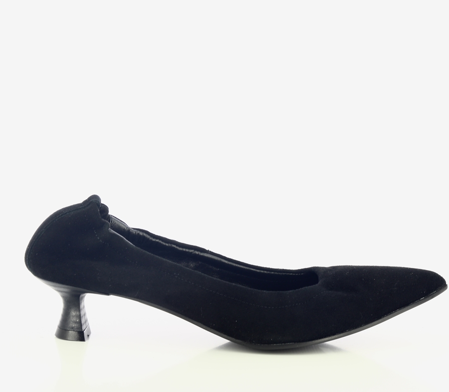 DETTAGLIO: Décolleté punta affusolata. Tacco svasato e bordo con elastico che crea un effetto arricciato, conferendo un tocco morbido e originale. Ideale per un look elegante e confortevole.