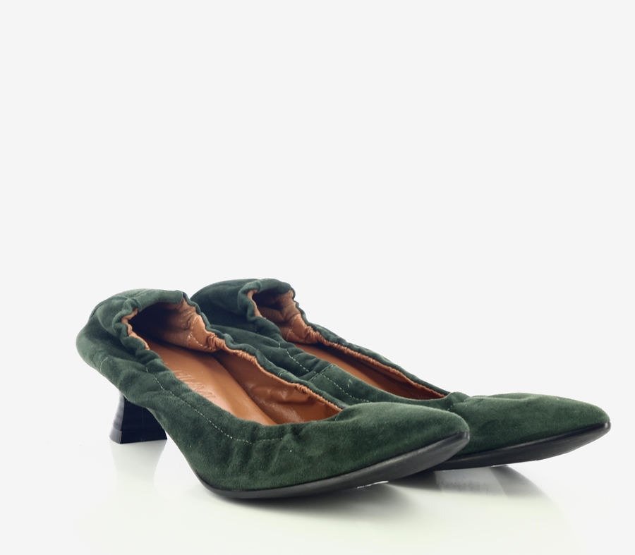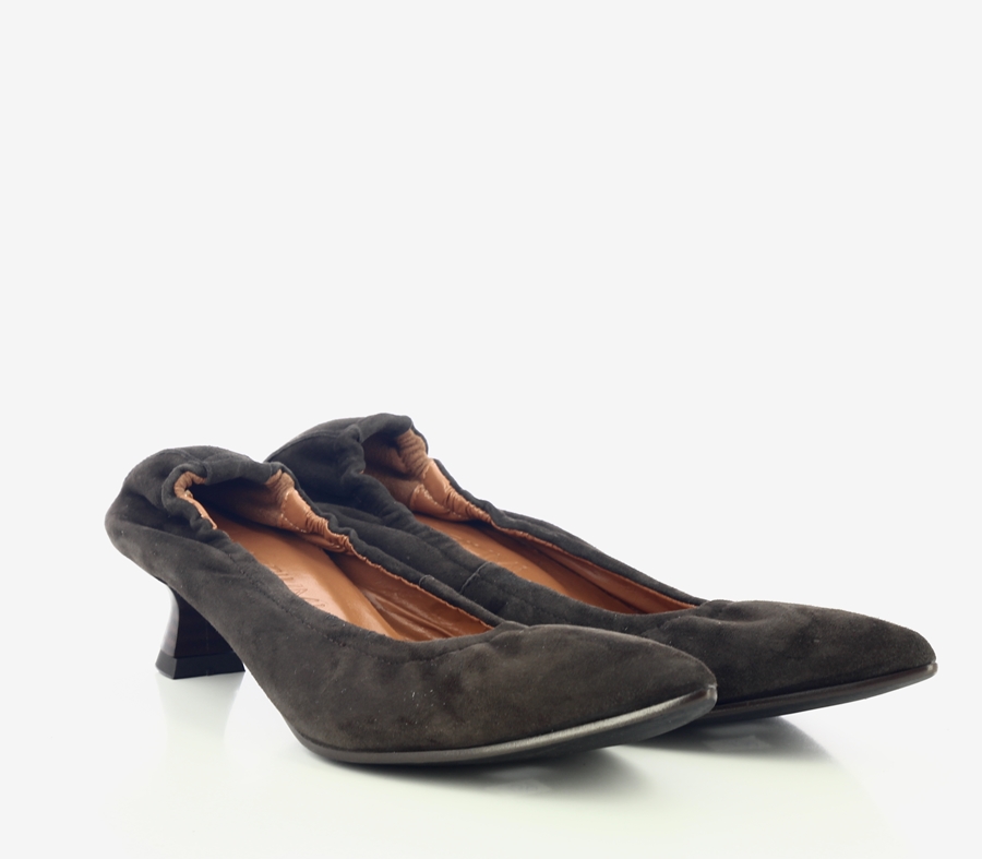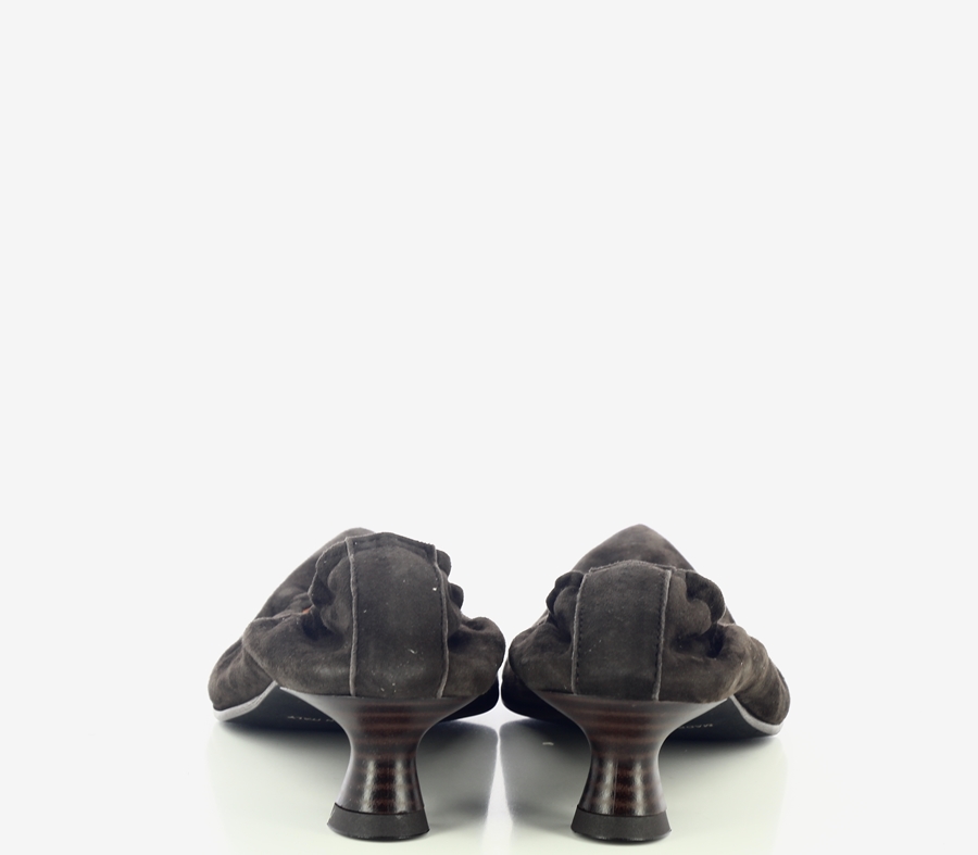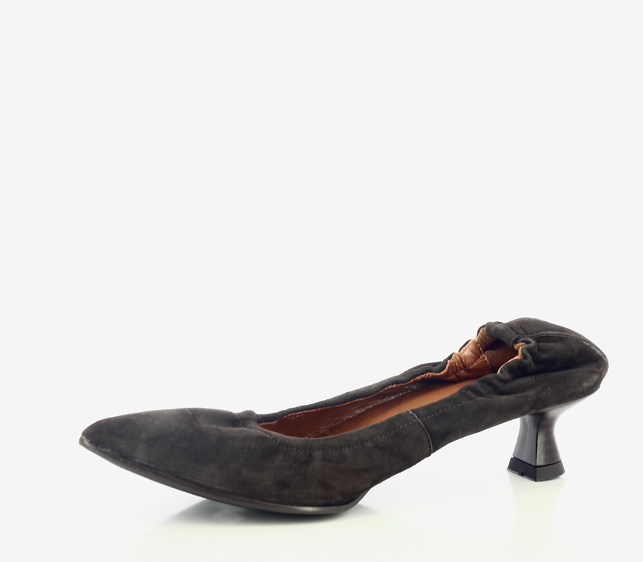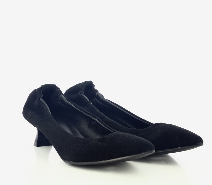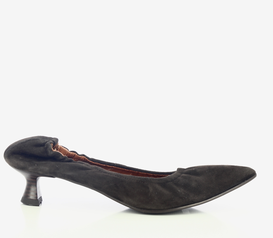 DETTAGLIO: Décolleté punta affusolata. Tacco svasato e bordo con elastico che crea un effetto arricciato, conferendo un tocco morbido e originale. Ideale per un look elegante e confortevole.