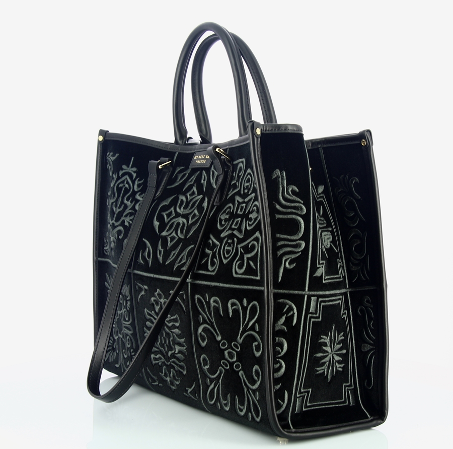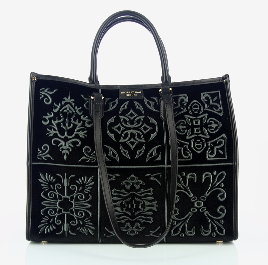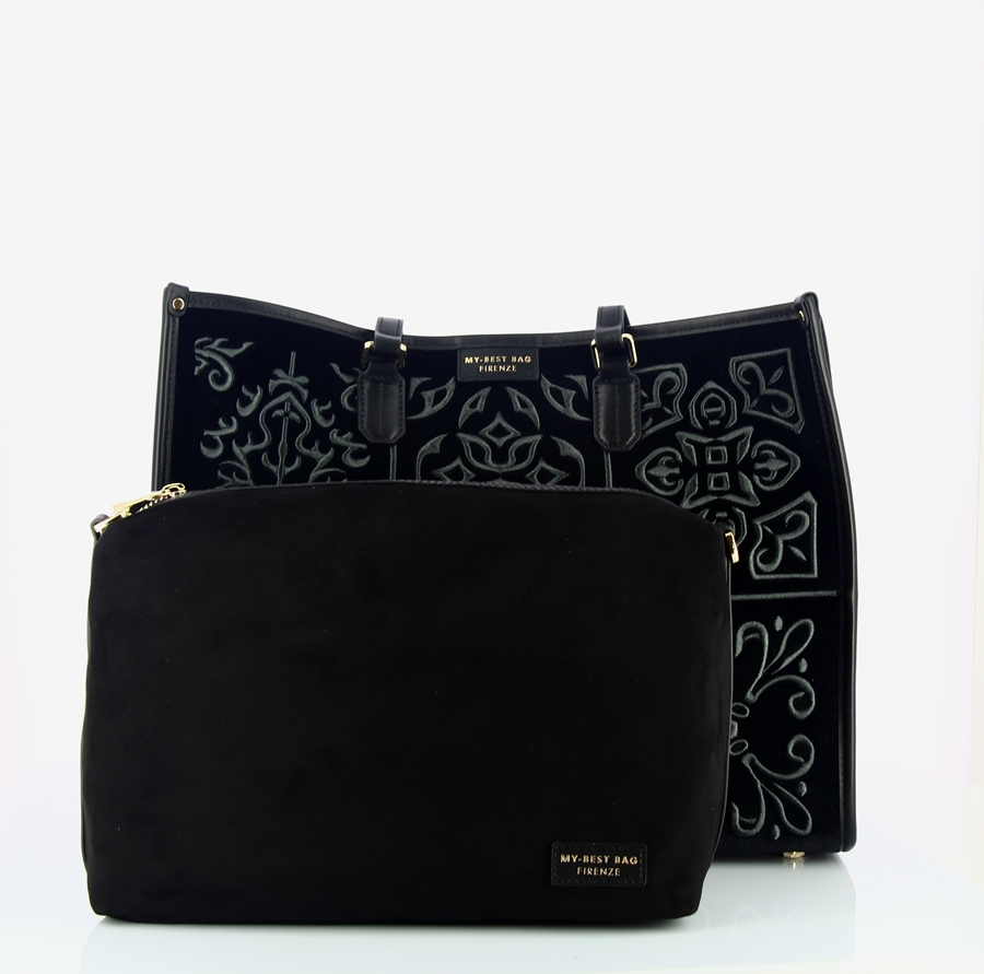 DETTAGLIO: Borsa tote con un design ricercato, caratterizzata da un motivo ricamato floreale.Realizzata in velluto.Dotata di doppi manici, che permettono di portarla comodamente a mano o a spalla.Pochette all’internocon tracolla removibile. Stile versatile, adatto per un tocco di eleganza ad ogni outfit.