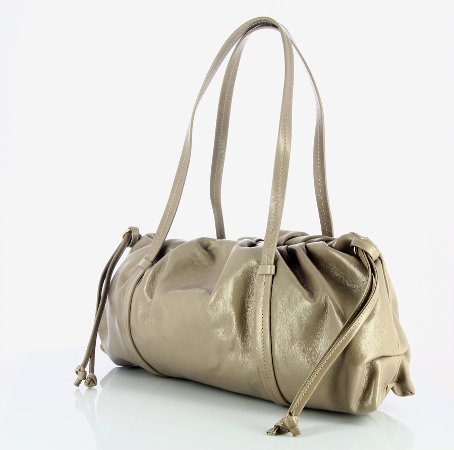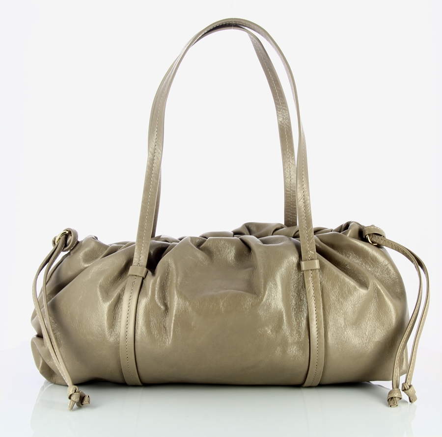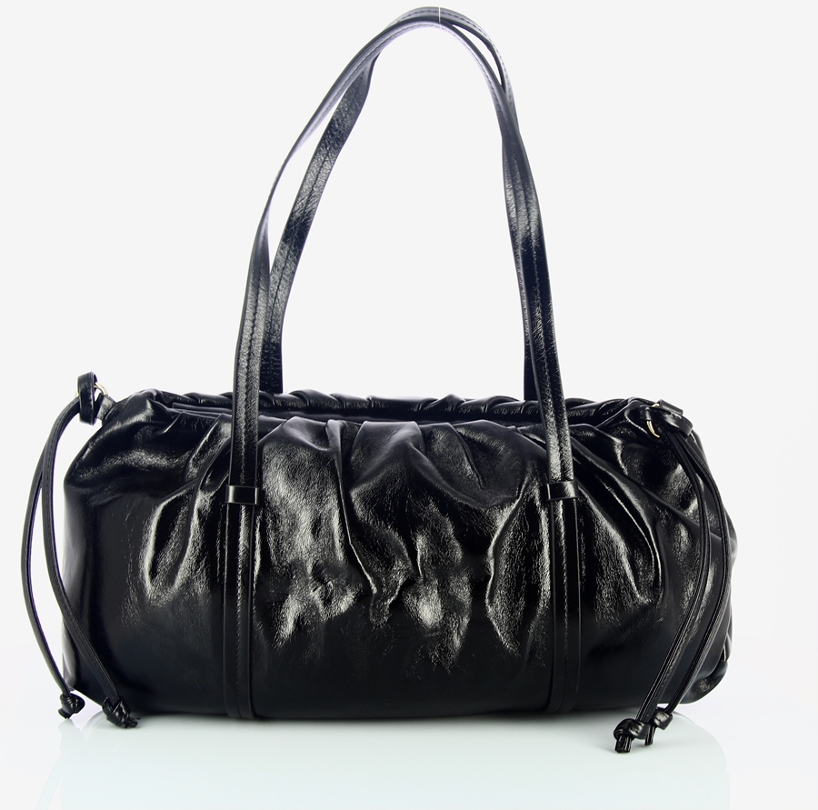 DETTAGLIO: Borsa due manici.Design bombato e arricciato. Presenta manici lunghi e una chiusura a coulisse in pelle sui lati che crea un effetto morbido e voluminoso.Perfetto per completare un look chic e contemporaneo.