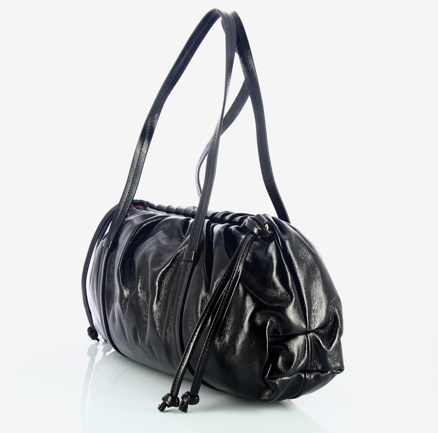 DETTAGLIO: Borsa due manici.Design bombato e arricciato. Presenta manici lunghi e una chiusura a coulisse in pelle sui lati che crea un effetto morbido e voluminoso.Perfetto per completare un look chic e contemporaneo.