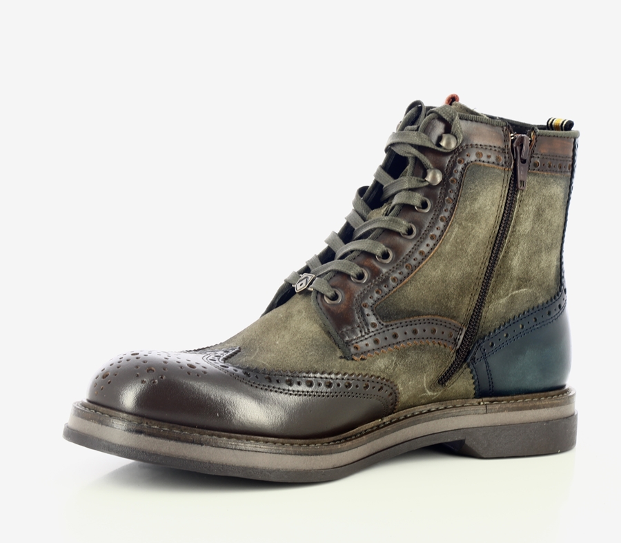 DETTAGLIO:Tronchetto d’ispirazione classica con dettagli traforati sul davanti e sui lati. Presenta una combinazione di pelle e camoscio a contrasto di colore. Un’opzione sofisticata adatta sia a contesti formali che informali.Made in Portogallo