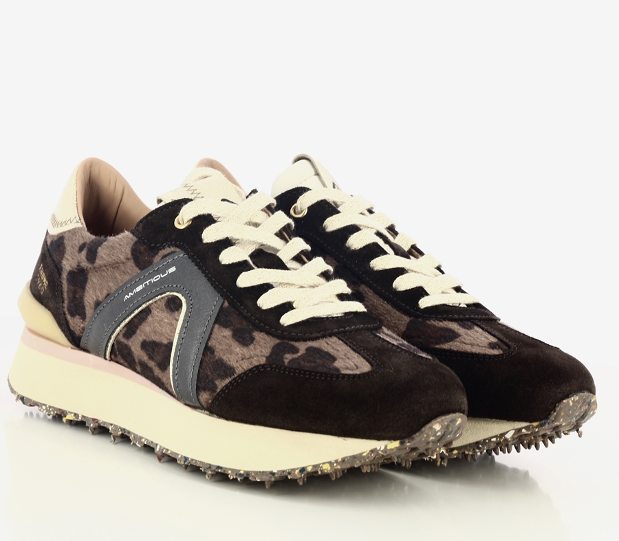 DETTAGLIO: Sneaker casual con motivo animalier e dettagli in pelle scamosciata .Chiusura con lacci. Suola platform con battistrada carrarmato. Presenta un’applicazione con il logo ‘AMBITIOUS’ sul lato e ‘RHOME 1960’ sul tallone. Tomaia multi-materiale per un look dinamico e alla moda. Adatta per un abbigliamento quotidiano e confortevole. Fodera pelle.