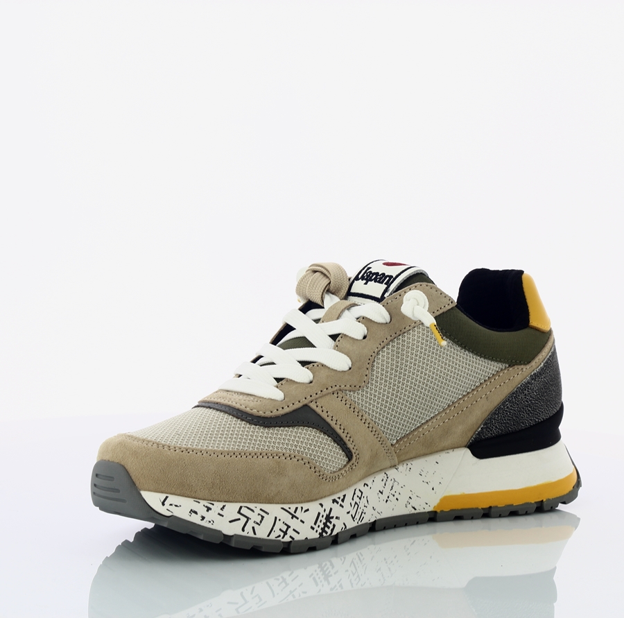 Sneaker Tokyo Ginza, dal carattere deciso e grintoso, combina materiali e colori derivati dal gusto tecnico e sportivo con dettagli urban. La tomaia combina suede e pelle con inserti in nylon e in tessuto riflettente. La suola voluminosa garantisce una camminata comoda ed uno stile impeccabile.Doppi lacci inclusi.