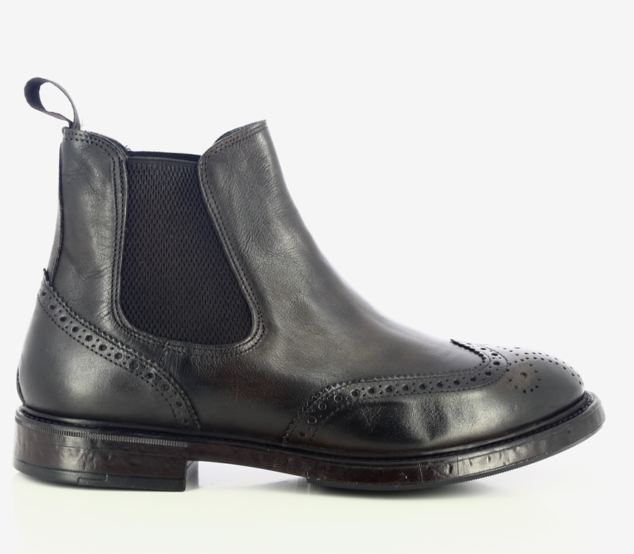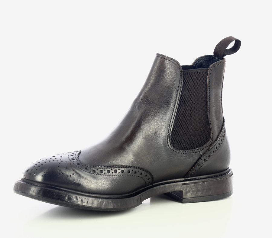 DETTAGLIO:Tronchetto chelsea,realizzato in pelle anticata.Cuciture brouge.Fatte a mano in Italia