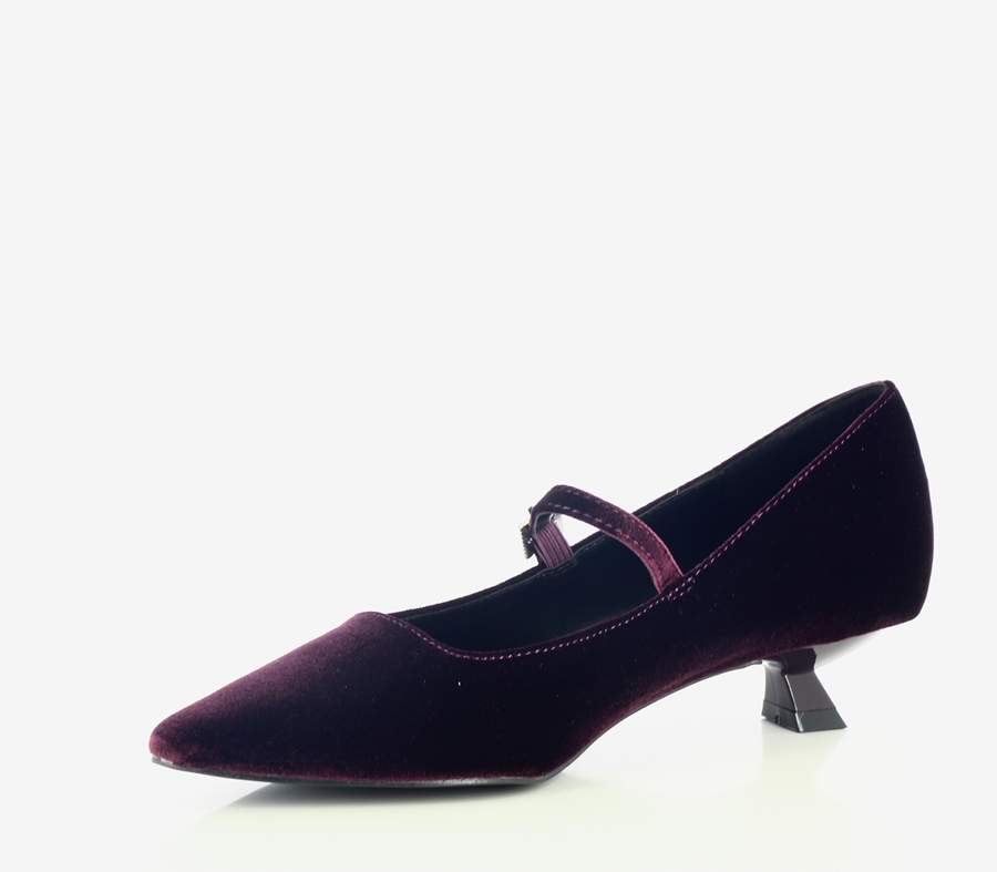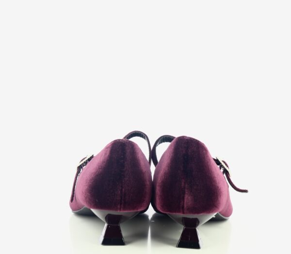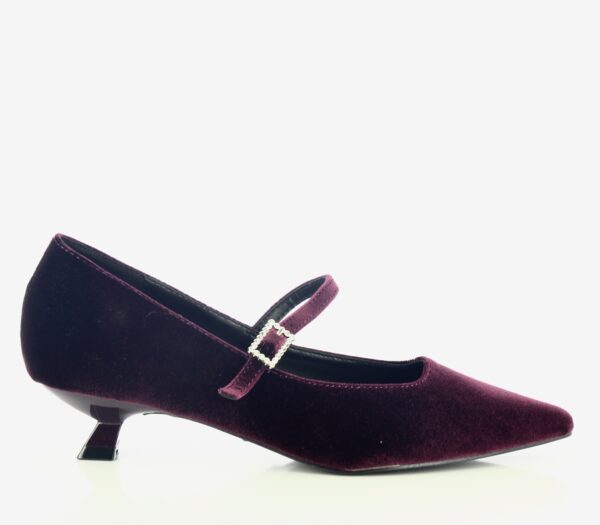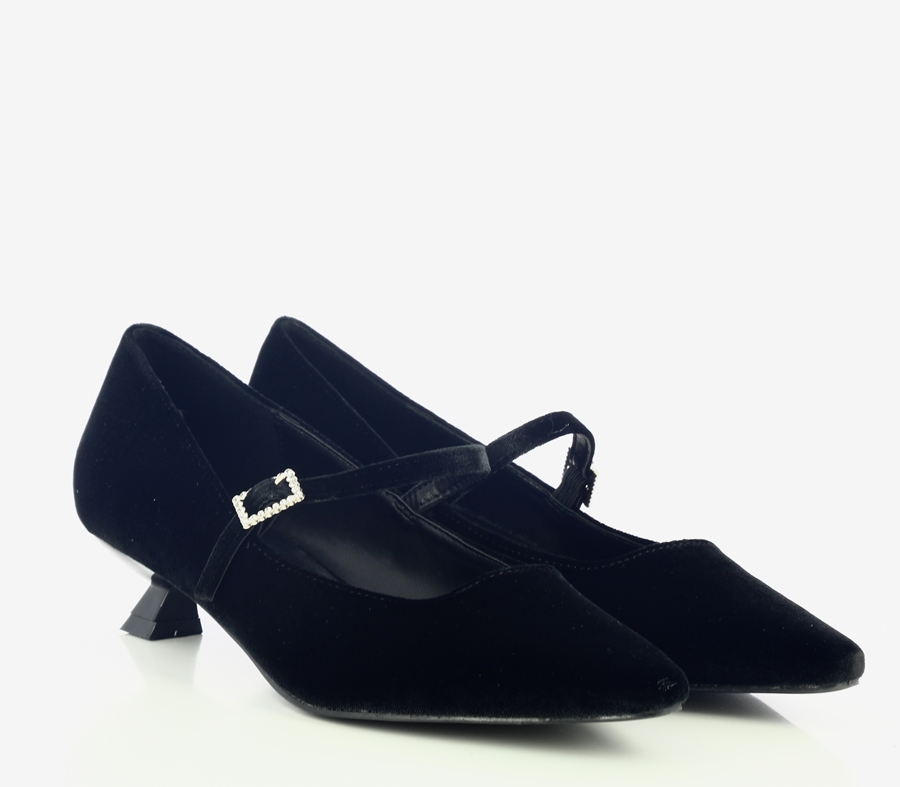 DETTAGLIO: Décolleté elegante con punta affusolata e tacco a rocchetto. Il cinturino sulla tomaia è impreziosito da una fibbia decorata con strass, aggiungendo un tocco chic e luminoso. Un modello raffinato, perfetto per occasioni speciali o per elevare un outfit serale.