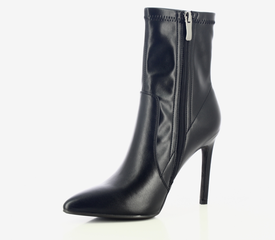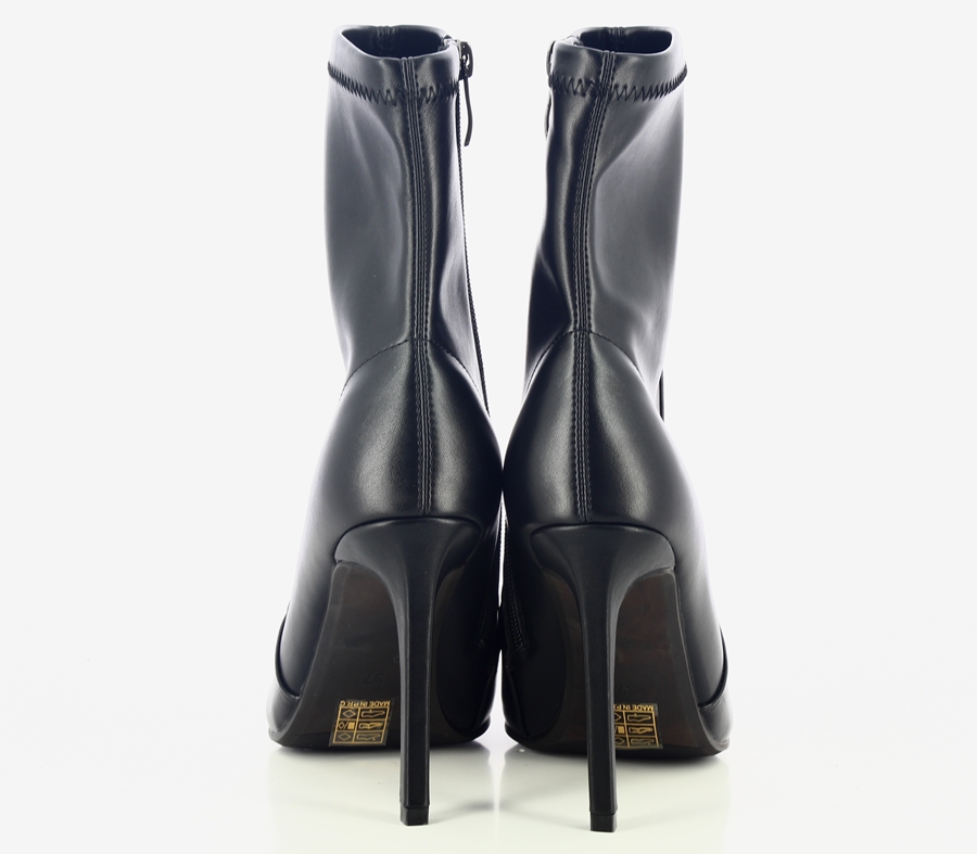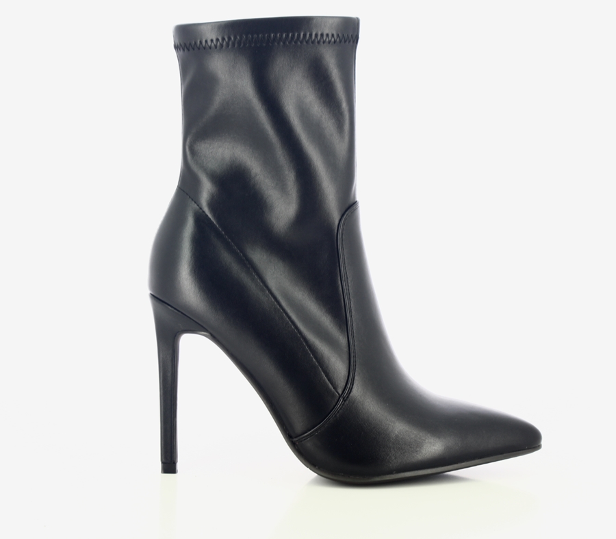 DETTAGLIO: Stivaletto dalla punta affusolata e tacco a spillo. Il gambale è in ecopelle elasticizzatoa, che si adatta perfettamente alla caviglia, offrendo una vestibilità confortevole e affusolata. Il design è moderno e versatile, ideale per un look sofisticato.