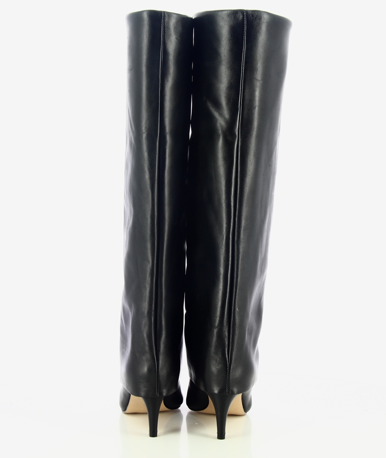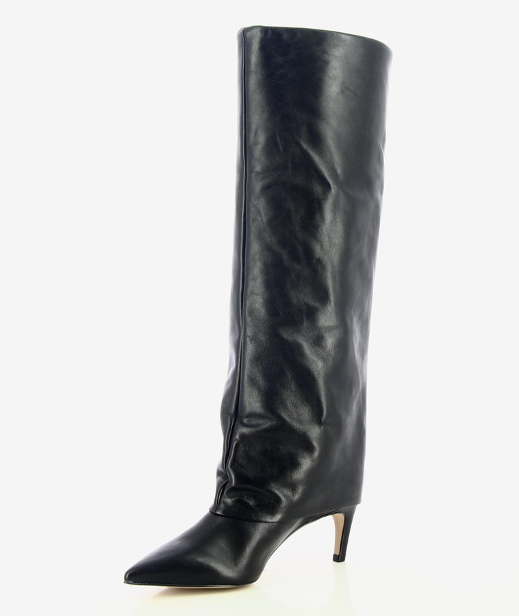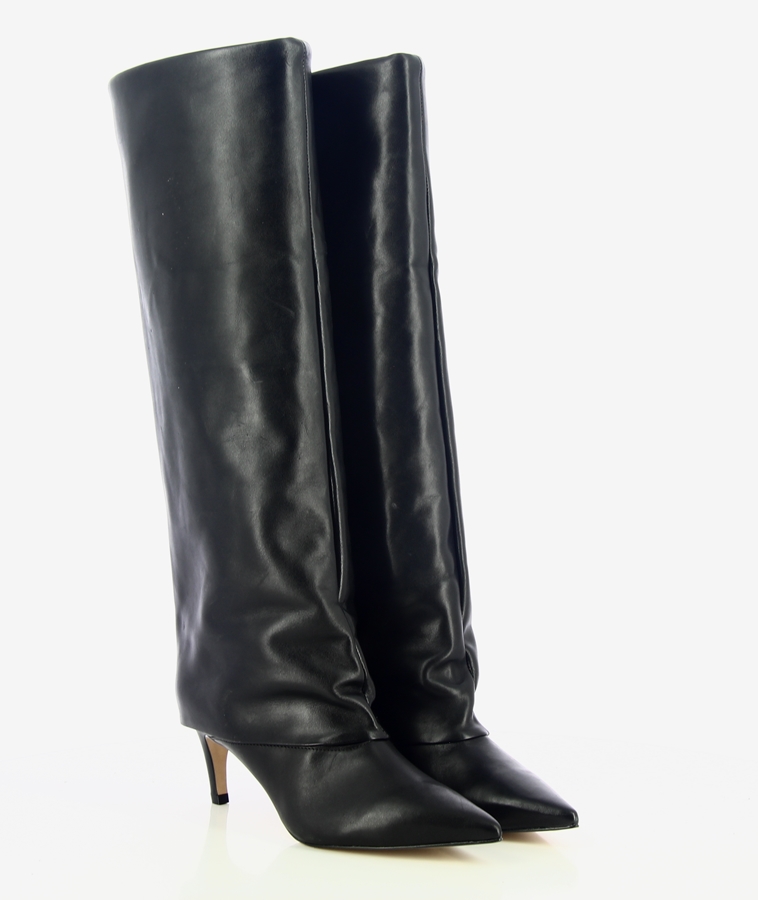 DETTAGLIO: Stivale elegante con punta affusolata e un tacco a stiletto comodo. Il gambale è morbido e alto, con ribalta. Un capo versatile ideale per valorizzare un outfit sofisticato. Calzata comoda e avvolgente.