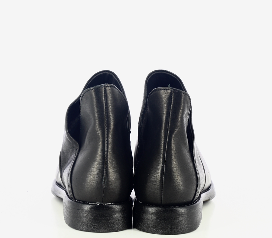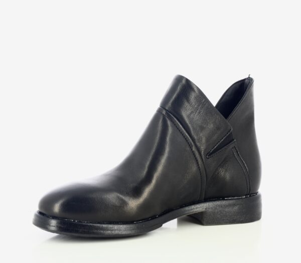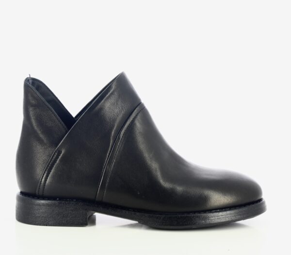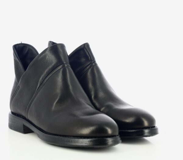 DETTAGLIO: Stivaletto realizzato in pelle,punta stondata.Il gambale è sagomato con un taglio a V sui lati, che conferisce un look moderno. La cucitura decorativa frontale aggiunge un tocco di stile.
