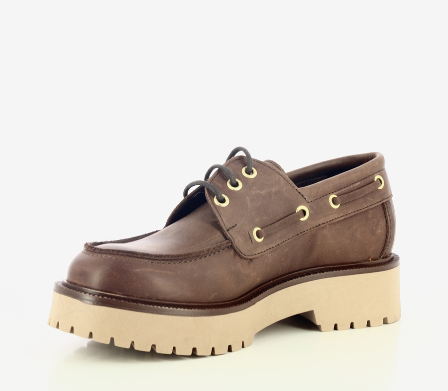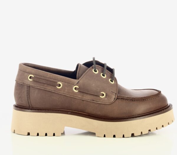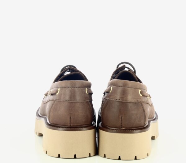 DETTAGLIO:Stringata modello “barca”.Realizzata in nubuk,laccio passante,anelli bronzo.Made in Italy
