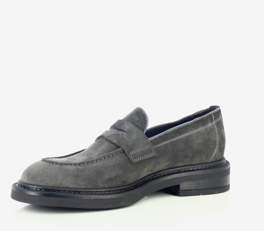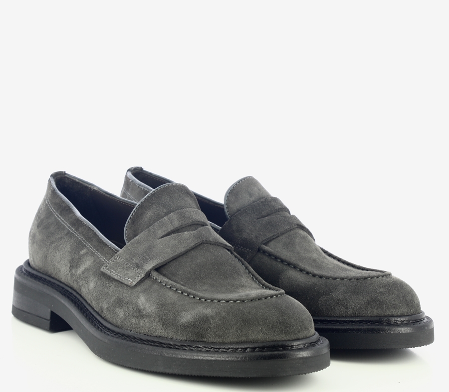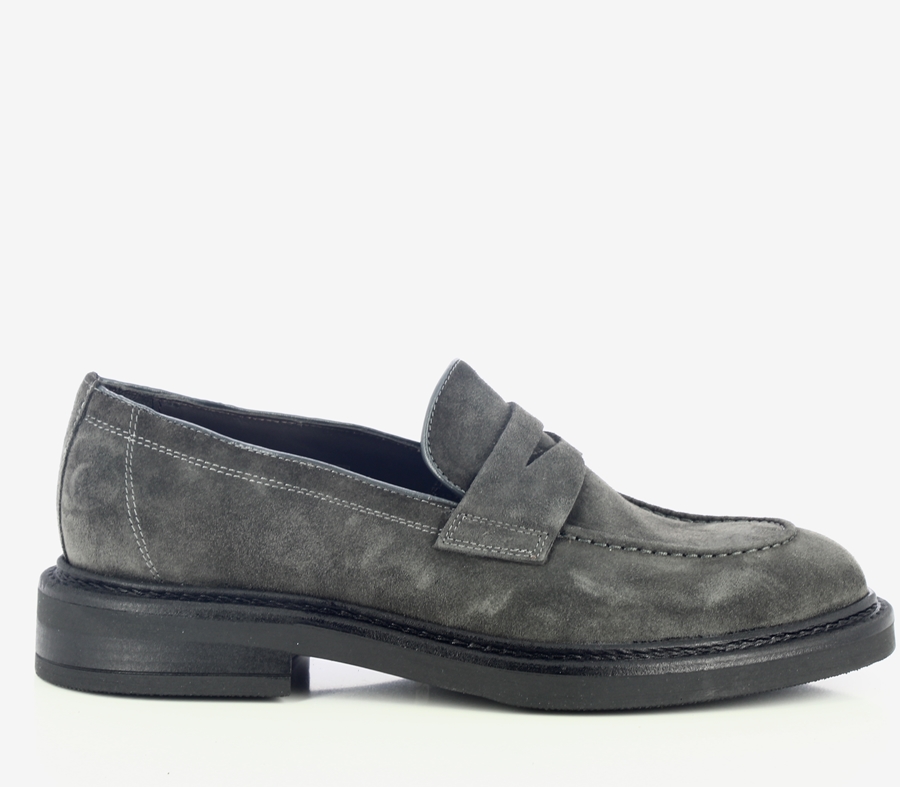 DETTAGLIO:Mocassino realizzato in pelle scamosciata,silhouette stondata.Suola gomma Made in Italy