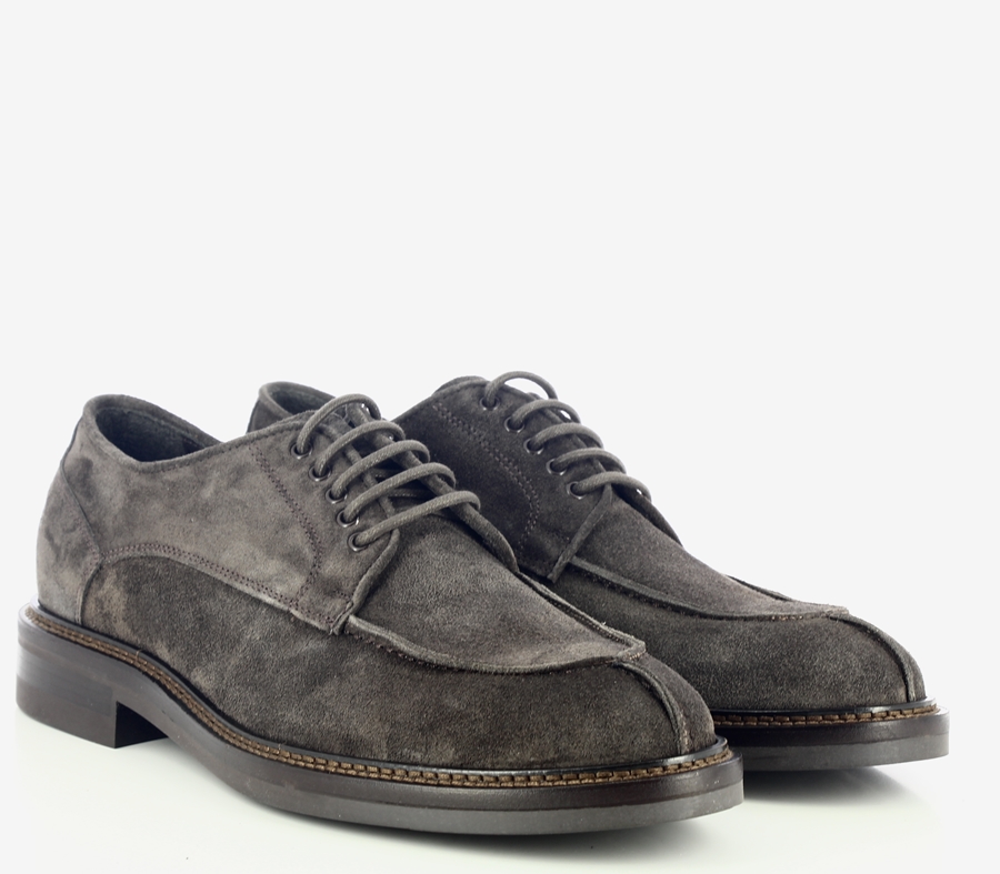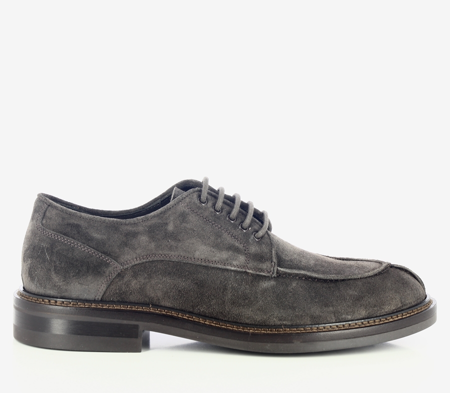DETTAGLIO:Stringata realizzata in pelle scamosciata,presenta cucitura frontale.Made in Italy