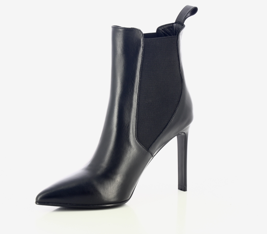 DETTAGLIO: Tronchetto elegante con punta affusolata e tacco a spillo. Presenta comode bande elastiche laterali , che richiamano lo stile Chelsea. Scarpa versatile, perfetta per arricchire outfit sia casual che formali.Made in Italy